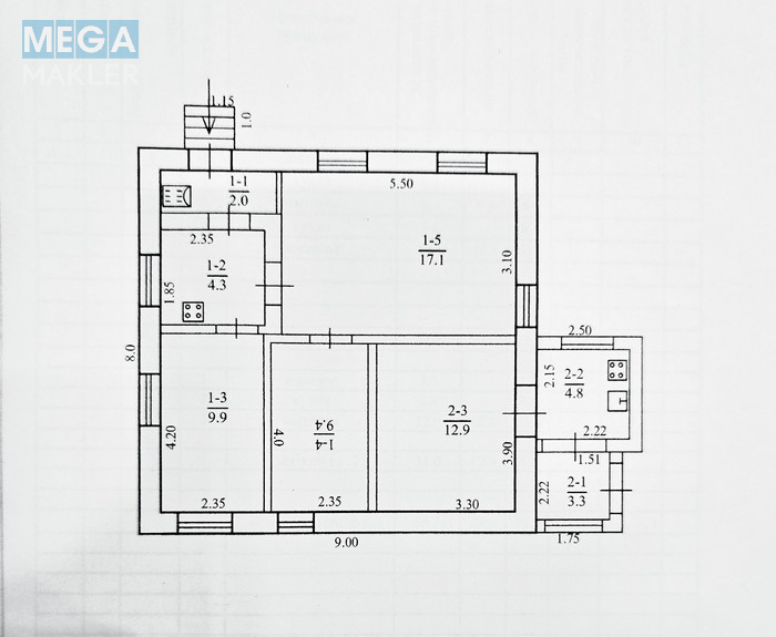 Будинок має два входи. Дві кухні та чотири кімнати.