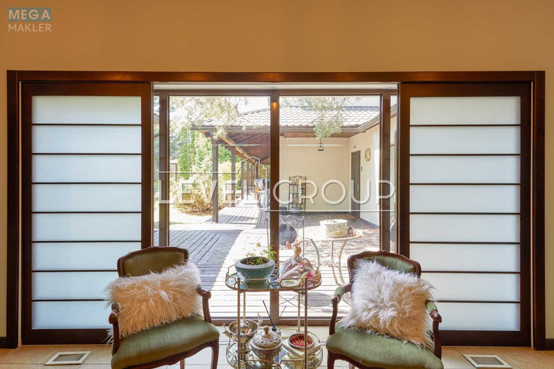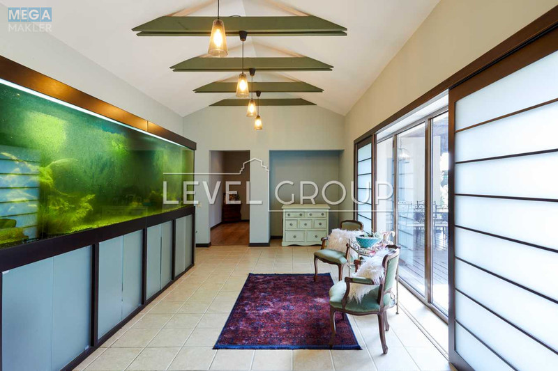 Гореничі. Дуже цікавий будинок, сім кімнат, пять спалень, вітальня з каміном, кухня - студія, сауна, чотири санвузли, доглянута ділянка з японським садом, ставком і купеллю, парковка на дві машини з навісом, Американська система опалення. Будинок повністю мебльований, оснащений всією необхідною технікою, площа: 274, 0 кв.м, 7 кімн., ділянка 12, 0 сот без комісії для покупця. Торг!