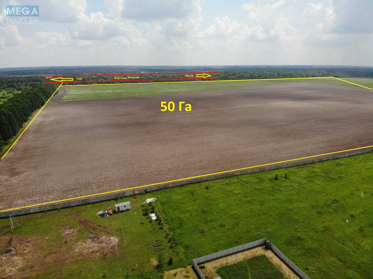 Продаж земельної ділянки 48 га ОСГ біля Києва Калинівка поруч залізниця