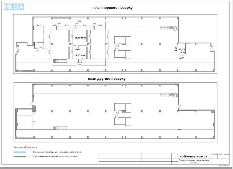 Площа: 1-й поверх + 2-й рівень = 1712,00 кв.м. (відповідно 1000,00 м кв + 712,00 м кв). Є можливість розділити/здавати це приміщення, як 2 окремих, а саме: