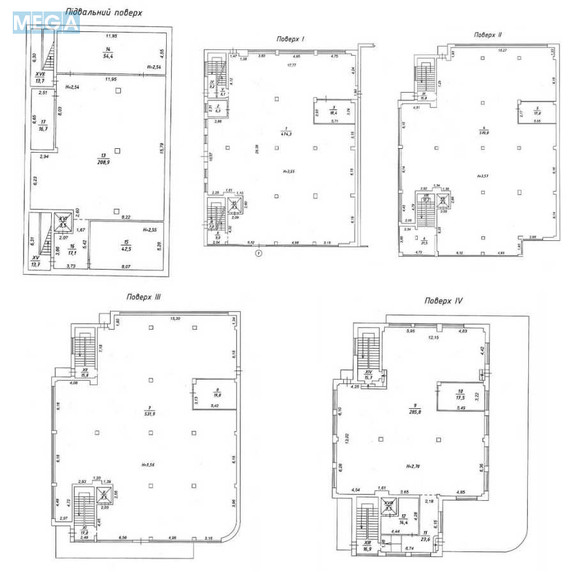 - Вільне планування (open space), площі поверхів