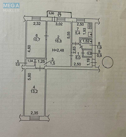 *Середній 3 поверх, не кутова, 58 метрів