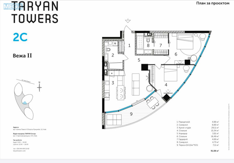| Площа (загальна/житлова/кухня) | 91/34/29 кв. м |