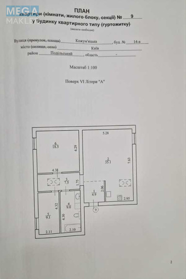 Продаж 2 кімнатної квартири (84/28/35), 6 пов. 6 пов. будинку