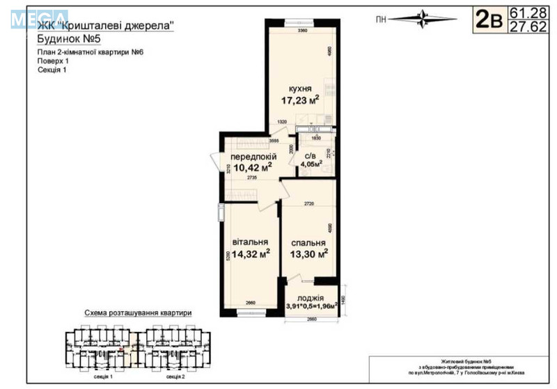 Площа (загальна/житлова/кухня) | 65/31/17 кв. м |
