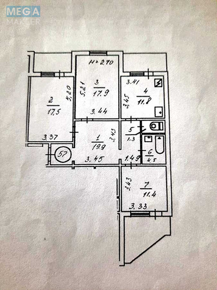 - Висота стелі 2,7 м