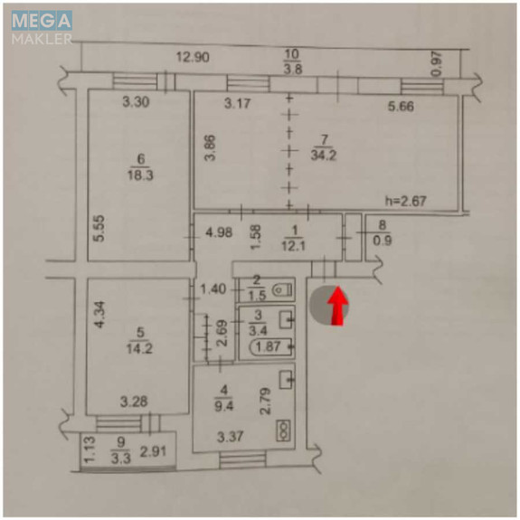 Житлова площа - 66,7 кв. м.