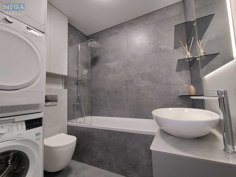 Повністю укомплектована якісними індивідуальними меблями, технікою (пральна і сушильна машинки, бойлер, два кондиціонери, два телевізора, вбудовані холодильник, духовка, мікрохвильова піч, індукційна плита, витяжка; і багато іншого.)