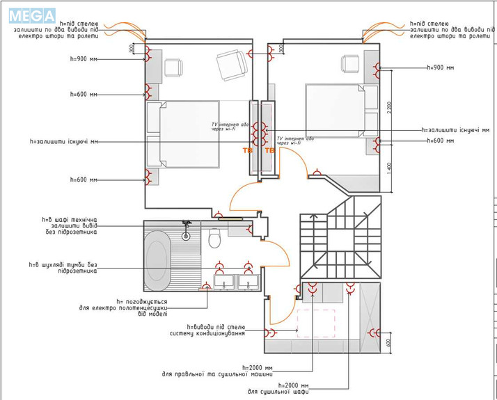 Простора кухня-вітальня, 2 спальні, 2 санвузли, гардеробна кімната.