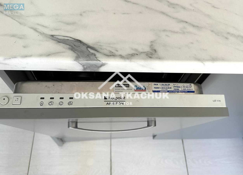 З меблів: двоспальне ліжко, шафи, кухонний гарнітур, стіл, стільці, передпокій. З техніки: кондиціонер, бойлер, пральна машина, посудомийна машина, телевізор, вбудований холодильник, газова плита, духова шафа, витяжка, електрочайник, мікрохвильова піч.