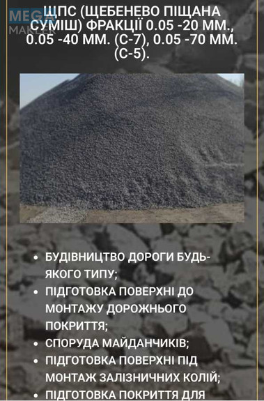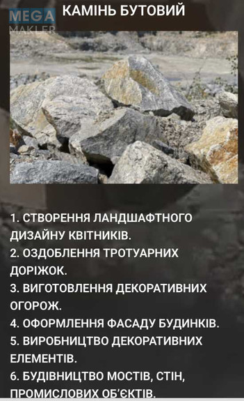 Продукція: щебінь різних фракцій, бутовий камінь, щебенево-піщана суміш.