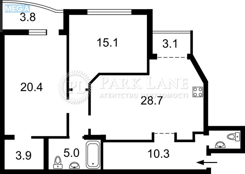| Площа (загальна/житлова/кухня) | 96/35/28,7 кв. м |