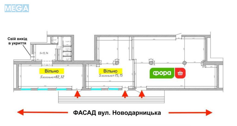 Оренда магазин / кав’ярня / салон 75м2, 82м2 та 157м2 біля ФОРА, вул. Новодарницька, 27, Дарницький р-н