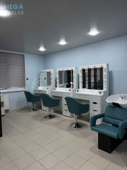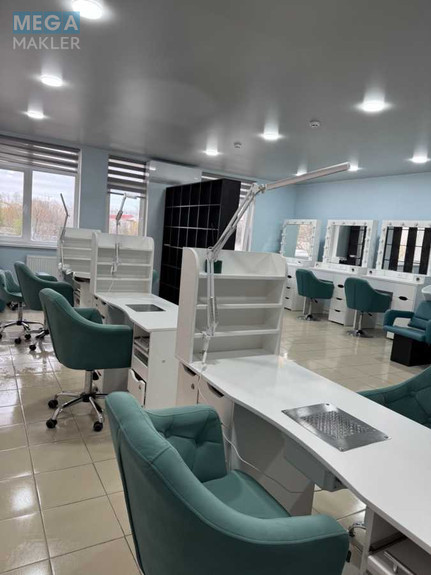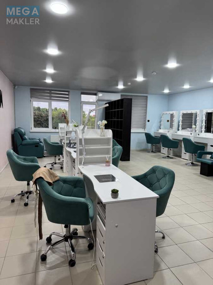 *Зал 53.8кв.м з трьома робочими місцями для перукарів, трьома столами для манікюру