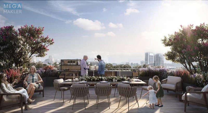 У будинку 5 ліфтів, підземний паркінг, дизайнерські лобі з висотою стелі 7 м, тераса з барбекю-зоною на даху, ексклюзивна зона для мешканців на 5 поверсі (спортзал, СПА, сауни, масажний кабінет). Живлення забезпечують два потужні генератори.