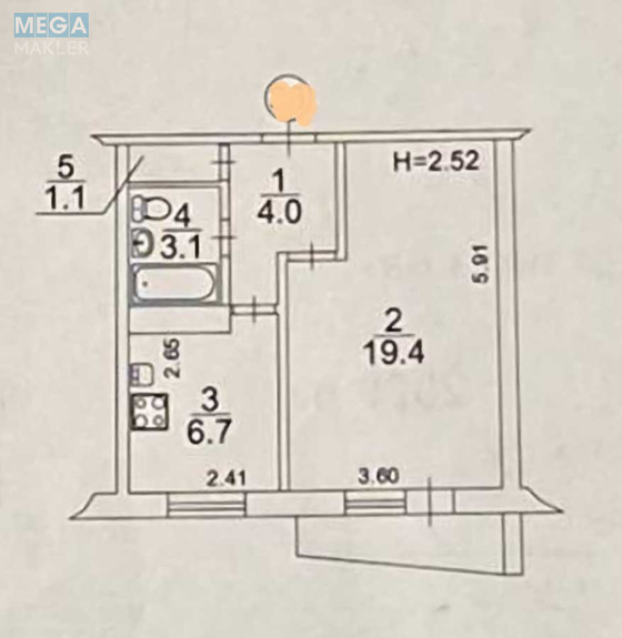 | Кімнат | 1 кімната |