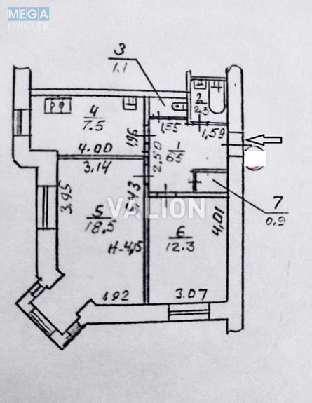 | Площа (загальна/житлова/кухня) | 49,1/30,8/7,5 кв. м |