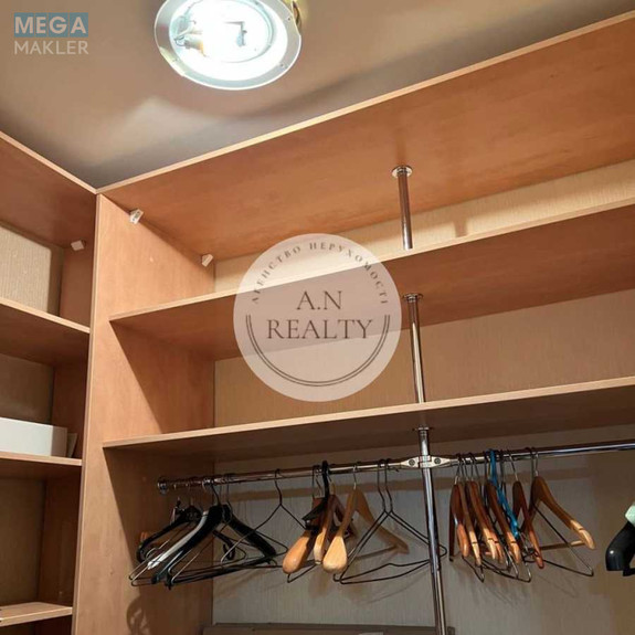 Спальня 22 кв.м: двоспальне ліжко, шафа, кондиціонер. Є вихід у гардеробну кімнату площею 3,5 кв.м.