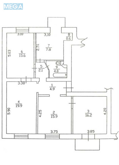 Продаж 4 кімнатної квартири (90/68/8), 6 пов. 6 пов. будинку