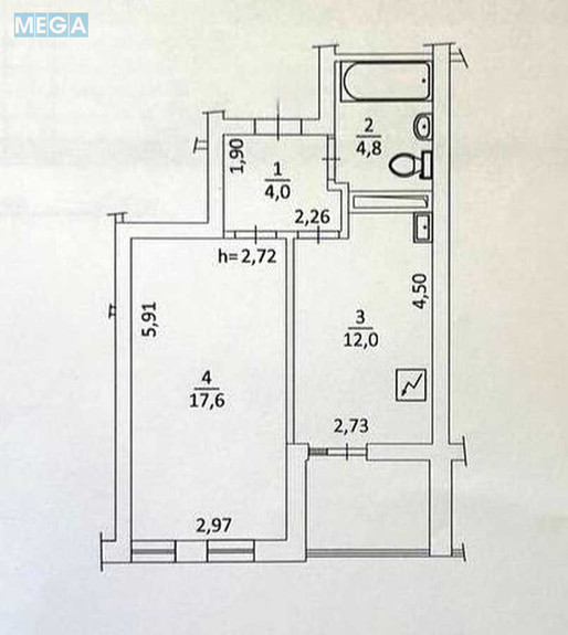 | Кімнат | 1 кімната |