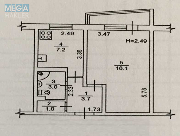 | Кімнат | 1 кімната |