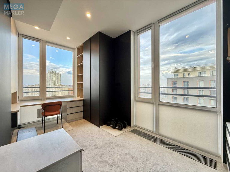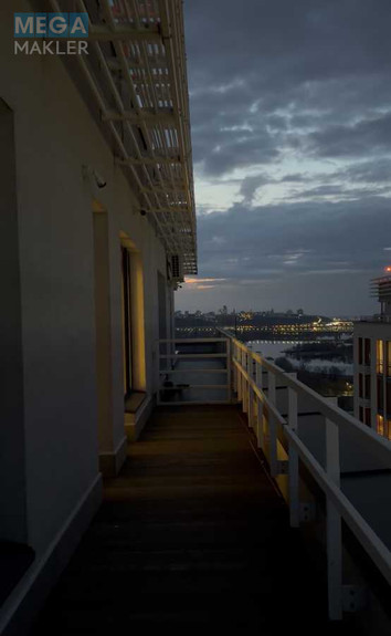 Дворівневий пентхаус площею 156 кв.м з власною терасою з червоного дерева та панорамним видом на Київ.