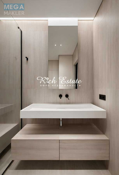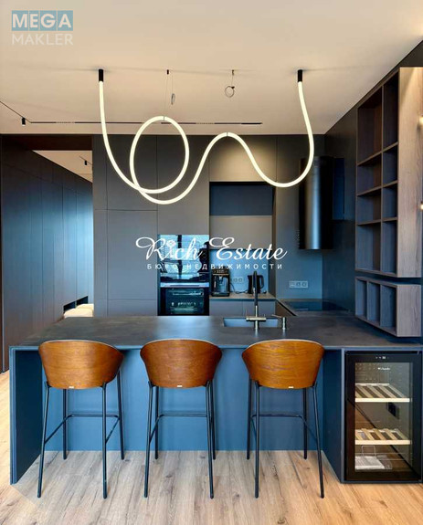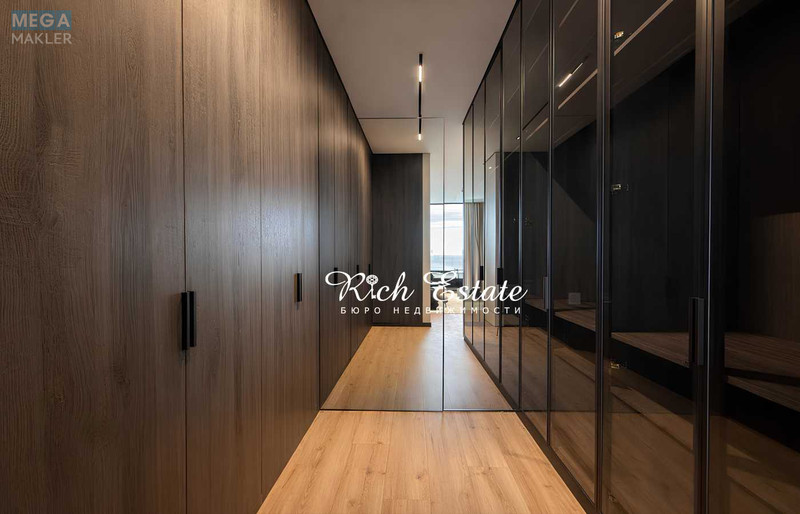 Квартира виконана у сучасному дизайнерському стилі з використанням преміальних матеріалів.