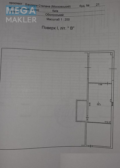 | Тип об’єкта | приміщення у нежитловій будівлі |