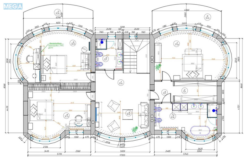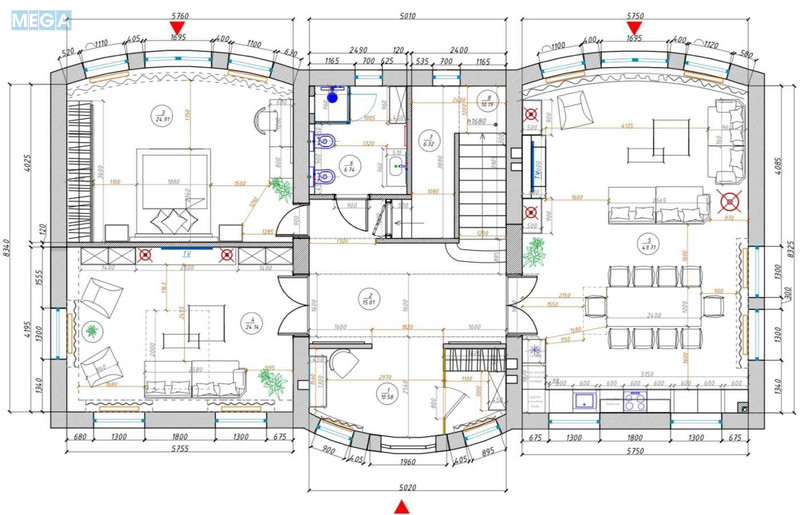 Дом можно разделить на симметричные 2 части и выйдет дуплекс с отдельными входами.