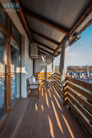 вихід на балкон, облаштований меблями для відпочинку.
