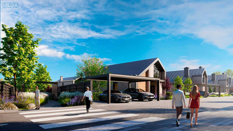 Земельна ділянка, готовий будинок з фасадом і дахом, тепловий насос Vaillant, електрика 15 кВт, свердловина 60 м, біоканалізація, система Розумний дім, ландшафт з автополивом, тераса Lunawood, парковка з навісом, огорожа.