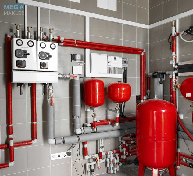 Енергоефективність класу А: тепловий насос Vaillant, каскадний котел, стіни (380 мм цегла + 150 мм мінвати), дах з утепленням 250 мм.