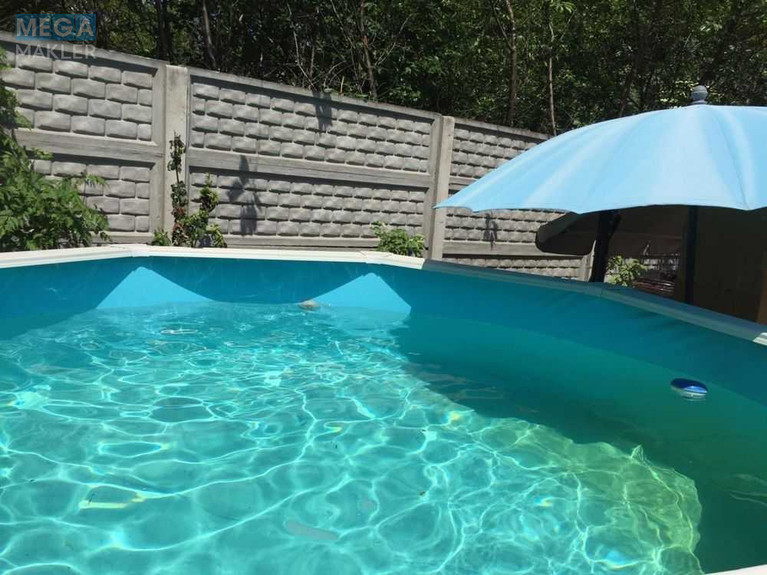 Капітальний навіс для авто, дровник. Автоматичні розсувні ворота, каркасний басейн на 6 м3, тротуарні доріжки, мангальна зона. Доглянута ділянка 6 соток з садком, та невеличким городом. Хвойні дерева, кущі троянд, гібіскусів.