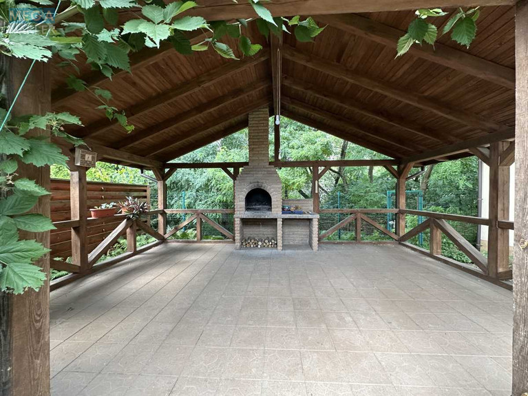 Є бензиновий генератор. Ухожена ділянка з ландшафтним дизайном. Зона барбекю, відкрита альтанка, господарчий будиночок, невелика грядка.